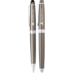 Exclusive Cutter & Buck® pen set featuring Pacific ballpoint stylus and roller ball with premium black ink cartridges. Soft rubber stylus tip is integrated into the end cap of ballpoint pen and eliminates fingerprints and smudges on your device. Compatible with any capacitive touchscreen device. Also ideal for everyday use with public touchscreens such as ATM or retail payment pads.